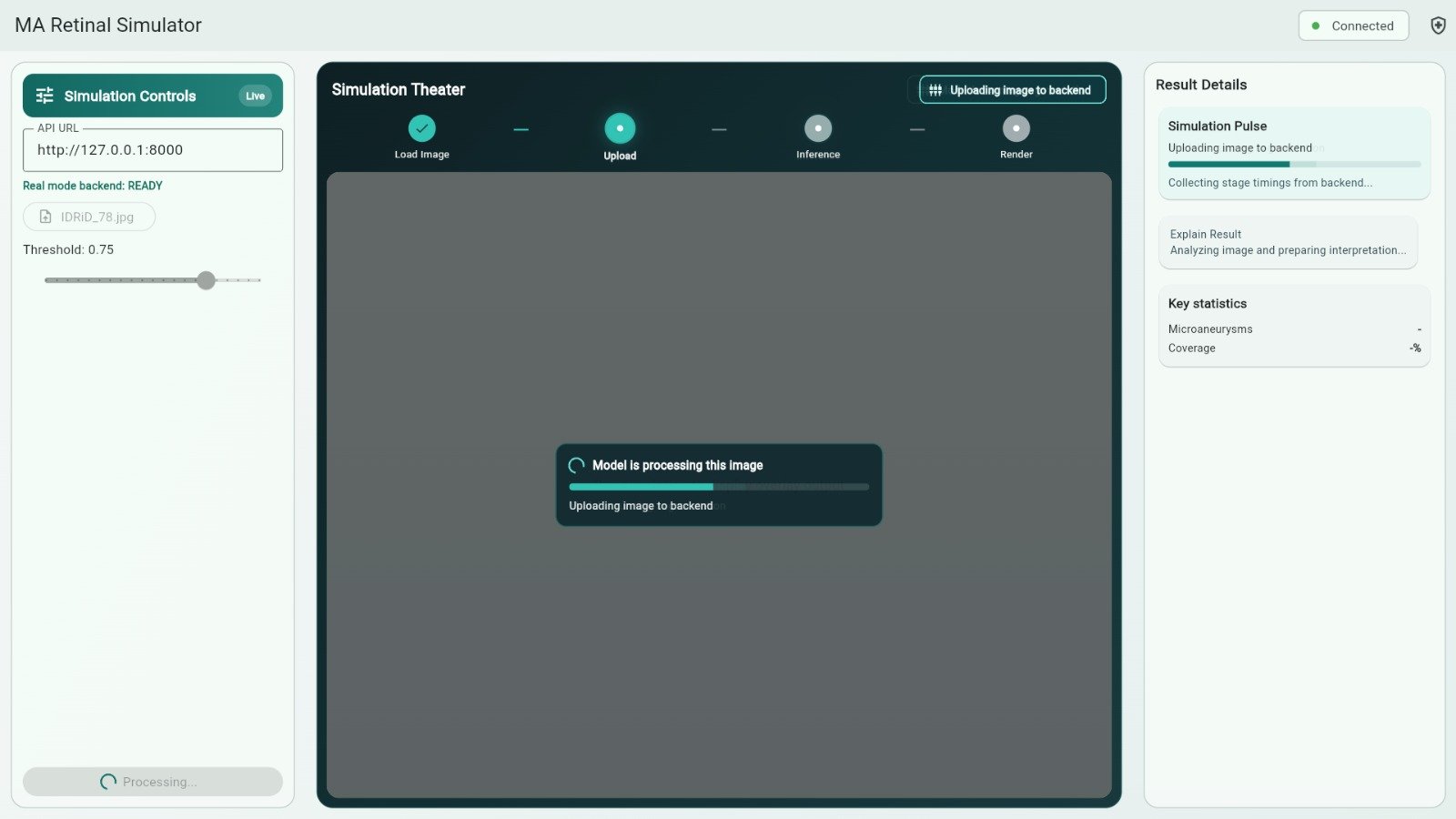 Platform ini menggabungkan teknik Computer Vision dan segmentasi citra untuk mengidentifikasi serta memvisualisasikan area retina pada kasus diabetes ringan secara terstruktur, sehingga mendukung analisis visual berbasis data yang lebih akurat dan komprehensif.